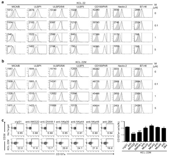2.2. NK Cell Cytotoxicity Correlates with Activating Ligand Expression after IM Treatment