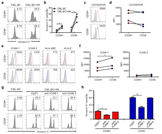 Chicago/Turabian StyleKim, Nayoung, Mi-Yeon Kim, Young-Uk Cho, WenYong Chen, Kyoo-Hyung Lee, and Hun Sik Kim. 2020. "PVR and ICAM-1 on Blast Crisis CML Stem and Progenitor Cells with TKI Resistance Confer Susceptibility to NK Cells" Cancers 12, no. 7: 1923. https://doi.org/10.3390/cancers12071923