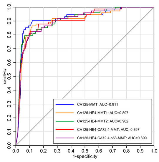 - CA125-HE4-CA72-4-MMT, where five indices for CA125, HE4 and CA72-4 were used with further variable selection;