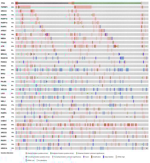 2.5. Genomic and Transcriptomic Alterations of DDR Genes among High Grade Serous Ovarian Cancers