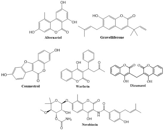 Pyrone-substituted coumarins: These are classified in three groups: 4-Hydroxycoumarin (Novobiocin and Dicumarol), 3-Phenylcoumarin (Coumestroln and Gravelliferone) and 3,4-Benzocoumarin (Aeternaryiol). 4-Hydroxycoumarins are not found in plants in free form. Warfarin, a synthetic compound, belongs to this group (Figure 4) [,].