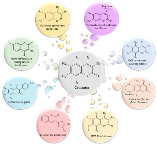 The general structure activity relationship (SAR) and anti-cancer activity of coumarins are presented in Figure 7.