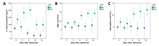 | C-reactive protein (mg/L) | 57 (2–345) | 61 (2–322) | 55 (6–345) | 0.284 |