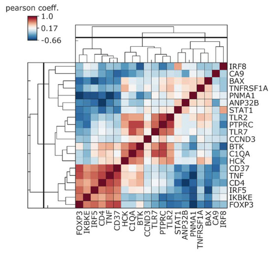 We also evaluated a possible relationship between CA9 expression and expression of immunity-related genes which were significantly upregulated in pancreatic ductal adenocarcinoma patients with a good prognosis compared to patients with a worse prognosis [145]. Already in IPMN lesions, CA9 showed a varying degree of negative correlation, with the analyzed immune competent genes highly expressed in patients with a good outcome (Figure 8).