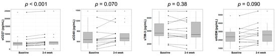 2.3. Changes in Plasma Soluble Checkpoint Protein Levels at Weeks 2 through 4 after the Initiation of Lenvatinib