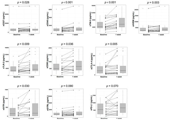 2.2. Changes in Plasma Soluble Checkpoint Protein Levels at Week 1 after the Initiation of Lenvatinib