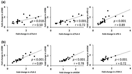 2.5. Relationships between Fold-Changes in Plasma Soluble Immune Checkpoint Protein Levels