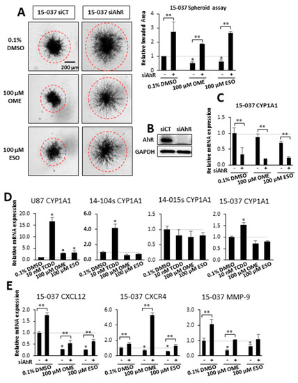 - Gramatzki, D.; Pantazis, G.; Schittenhelm, J.; Tabatabai, G.; Kohle, C.; Wick, W.; Schwarz, M.; Weller, M.; Tritschler, I. Aryl hydrocarbon receptor inhibition downregulates the TGF-beta/Smad pathway in human glioblastoma cells. Oncogene 2009, 28, 2593–2605. [Google Scholar] [CrossRef]