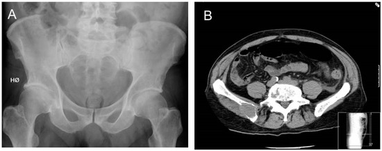 Particularly in the spine and pelvis, whole-body low dose CT (WBLDCT) has been shown to have superior sensitivity in detecting osteolytic lesions. For instance, superimposed air in the bowel can challenge the interpretation of the pelvis (Figure 2). In a study of 32 patients with MM, it was shown that osteolytic lesions in the pelvis or spine were found in 50% of the patients examined with radiographs, and in 74% of patients examined with WBLDCT [31]. A large, retrospective, international, multicenter study performed a blinded comparison of CSS and WBLDCT in patients with newly diagnosed MM [32]. In general, WBLDCT was superior to CSS in identifying lytic lesions. However, the difference in the sensitivity depended on the location of the lytic lesions. WBLDCT was superior in detecting lesions in the spine and pelvis, whereas no significant difference in sensitivity was observed in long bones. In a large sub-cohort of patients with apparent smoldering MM (SMM), lytic lesions were identified by WBLDCT, but not by CSS, in 22.2% of the patients. These patients had a higher probability of progression to symptomatic myeloma compared to those without bone destructions [32]. These and similar, small cohort study observations caused a change in diagnostic practice in many MM centers. WBLDCT was implemented as the standard for diagnostic screening for MBD. Also, in the updated IMWG 2014 guideline, WBLDCT was recommended over CSS [27].