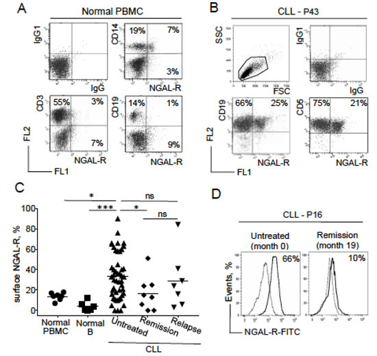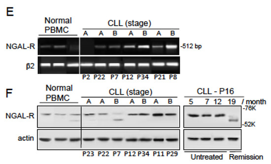 2.3. NGAL-R Is Overexpressed in CLL Cells from Untreated Patients, and Downregulated in CLL Cells from Patients in Remission