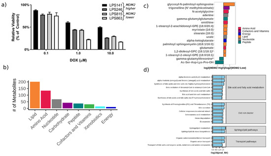 Patt, A.; Demoret, B.; Stets, C.; Bill, K.-L.; Smith, P.; Vijay, A.; Patterson, A.; Hays, J.; Hoang, M.; Chen, J.L.; et al. MDM2-Dependent Rewiring of Metabolomic and Lipidomic Profiles in Dedifferentiated Liposarcoma Models. Cancers 2020, 12, 2157. https://doi.org/10.3390/cancers12082157