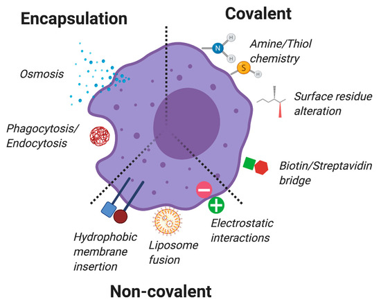 - Wang, Q.; Cheng, H.; Peng, H.; Zhou, H.; Li, P.Y.; Langer, R. Non-genetic engineering of cells for drug delivery and cell-based therapy. Adv. Drug Deliv. Rev. 2015, 91, 125–140. [Google Scholar] [CrossRef] [PubMed]