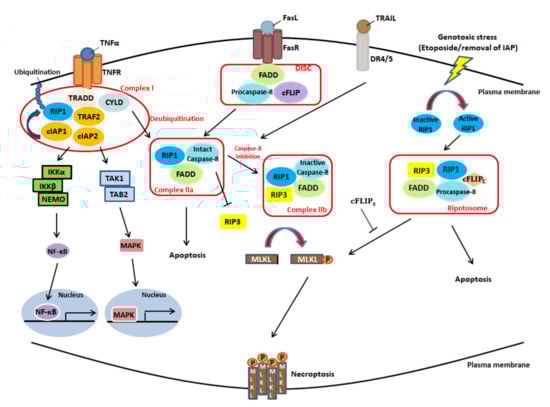 - Linkermann, A.; Green, D.R. Necroptosis. N. Engl. J. Med. 2014, 370, 455–465. [Google Scholar] [CrossRef]