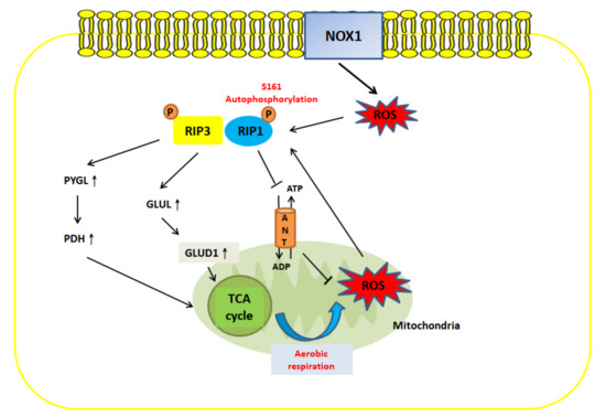 - Zhang, Y.; Su, S.S.; Zhao, S.; Yang, Z.; Zhong, C.Q.; Chen, X.; Cai, Q.; Yang, Z.H.; Huang, D.; Wu, R.; et al. RIP1 autophosphorylation is promoted by mitochondrial ROS and is essential for RIP3 recruitment into necrosome. Nat. Commun. 2017, 8, 14329. [Google Scholar] [CrossRef] [PubMed]