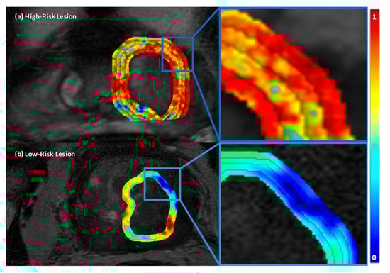 PCa is known to influence its surrounding habitat [16], resulting in areas with variable perfusion and permeability [21]. While evidence regarding the field effect of PCa on its habitat exists [16,22,23], surprisingly, there has been no work on the use of radiomics to characterize the peri-tumoral region surrounding MRI-visible lesions from the perspective of PCa risk stratification.