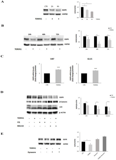 2.4. EGFR Expression Is Reduced upon mTOR Inhibition in GBM Cells