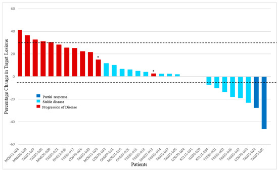 Investigator-determined tumor response was radiographically measured every six weeks from treatment initiation using RECIST version 1.1 [17].