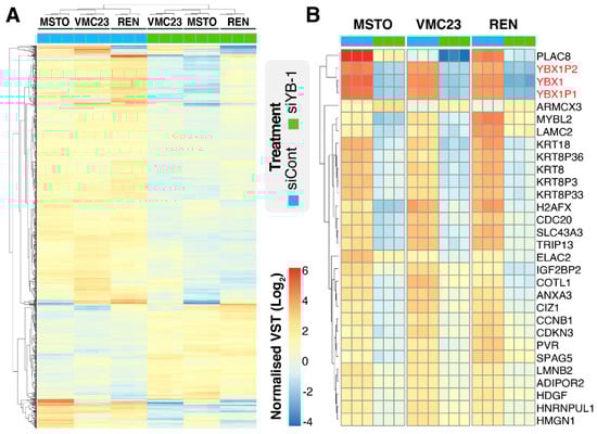 2.1. YB-1 Knockdown Alters Gene Transcription in MPM Cells