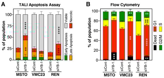 2.6. Growth Inhibition after YB-1 Knockdown Occurs via Apoptosis or an Altered Cell Cycle