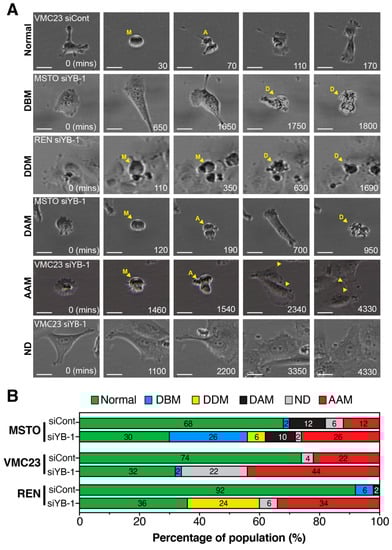 2.7. Live-Cell Imaging Confirms that YB-1 Knockdown Induces Three Different Growth Inhibitory Phenotypes