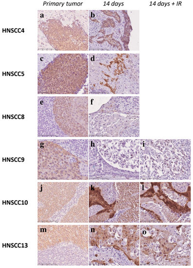 - Freudlsperger, C.; Horn, D.; Weissfuss, S.; Weichert, W.; Weber, K.J.; Saure, D.; Sharma, S.; Dyckhoff, G.; Grabe, N.; Plinkert, P.; et al. Phosphorylation of AKT(Ser473) serves as an independent prognostic marker for radiosensitivity in advanced head and neck squamous cell carcinoma. Int. J. Cancer 2015, 136, 2775–2785. [Google Scholar] [CrossRef] [PubMed]