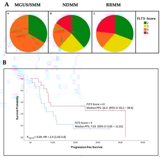 2.2. High FLT3 Protein (CD135) Expression in Myeloma Cells Correlates with Shorter Progression-Free Survival