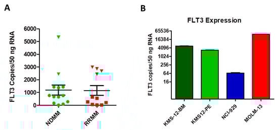2.4. FLT3 Tyrosine Kinase Receptor Gene Expression Is Elevated in a Subgroup of MM Patients