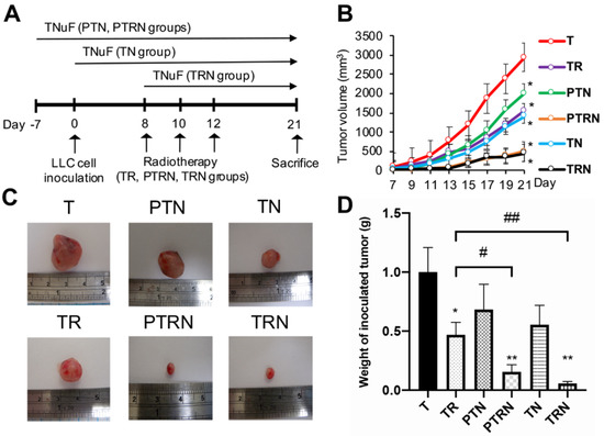 2.1. Effect of TNuF Combined with Radiotherapy on Tumor Growth