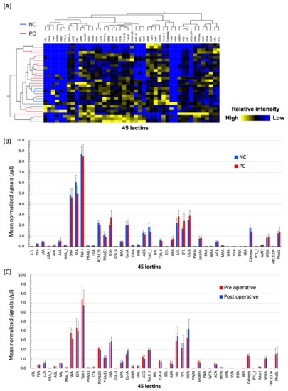 - Matsuda, A.; Kuno, A.; Nakagawa, T.; Ikehara, Y.; Irimura, T.; Yamamoto, M.; Nakanuma, Y.; Miyoshi, E.; Nakamori, S.; Nakanishi, H.; et al. Lectin Microarray-Based Sero-Biomarker Verification Targeting Aberrant O-Linked Glycosylation on Mucin 1. Anal. Chem. 2015, 87, 7274–7281. [Google Scholar] [CrossRef] [PubMed]