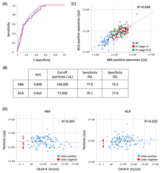 2.5. Evaluation of the Diagnostic Utility of ABA- and ACA-Positive EV Counts Elevated in PC Sera