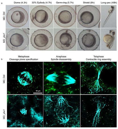 2.3. YB-1 Depletion Causes Cytokinesis Failure in Zebrafish Embryos Resulting in Developmental Defects