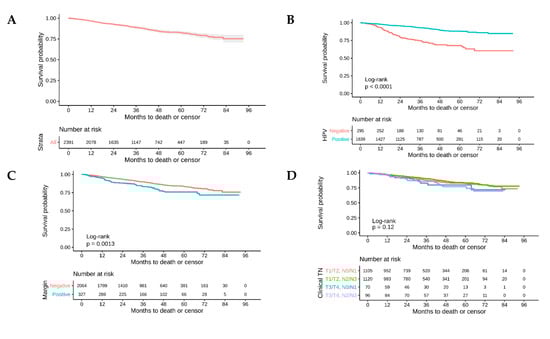 - Park, Y.M.; Kang, M.S.; Koh, Y.W.; Choi, E.C.; Kim, S.-H. Does p16+ predict a favorable prognosis for oropharyngeal cancer? Risk factors for treatment failure for patients who underwent surgery-based therapy. Ann. Surg. Oncol. 2018, 26, 547–554. [Google Scholar] [CrossRef]
