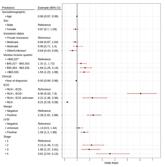 | RLN+, ECE+ | 1.6 | 1.08–2.37 | 0.019 |