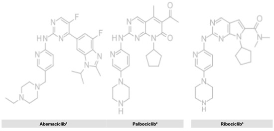 Chemical structure of the different CDK inhibitors. 1. Abemaciclib [31]. 2. Palbociclib [32]. 3. Ribociclib [33].
