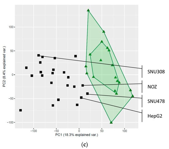 4.1. Characterized Hepatobiliary Cancer Cell Lines, Contamination Testing, and RNA Extraction and Sequencing
