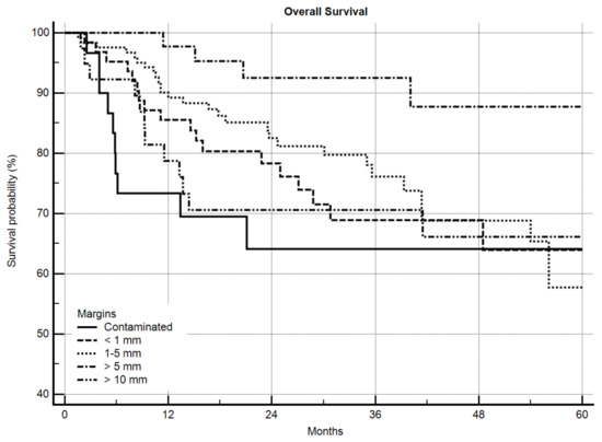 Willeumier et al., in 2015 showed a significant impact of margin width (contaminated, ≤2 mm, and >2 mm) on LRFS but not on OS in 127 patients, whereas not many other studies could prove an effect of positive margins on OS [29].