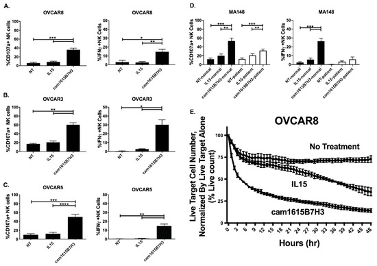 3.3. cam1615B7H3 TriKE Exhibits Potent Killing of Ovarian Cancer