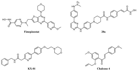 Several rationally designed JAK2/HDAC6 inhibitors have also been reported [180]. The most promising compound in the series (20a in the paper; Figure 8) showed comparable potency against the targets (IC50 JAK2 = 8 nM; IC50 HDAC6 = 46 nM), which prolonged the survival of mice in an AML xenograft model, and counteracted spleen enlargement. A preliminary evaluation of the pharmacokinetic profile was also performed.