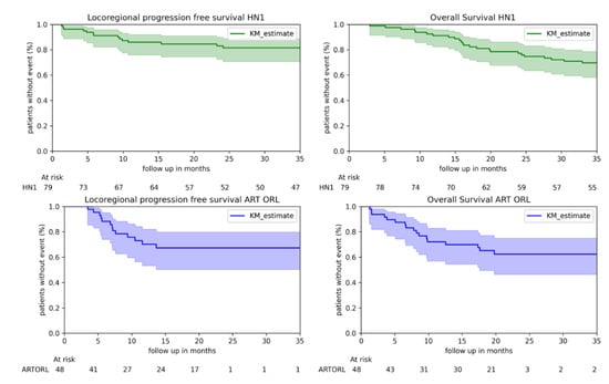 Kaplan Meier estimates, for HN1 and ART ORL cohorts.