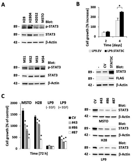 2.1. STAT3 Expression is Essential for Optimal Cell Growth in Malignant Pleural Mesothelioma (MPM) Cell Lines