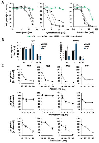 2.2. The Small Molecule Drugs Atovaquone and Pyrimethamine Inhibit Growth of MPM Cells