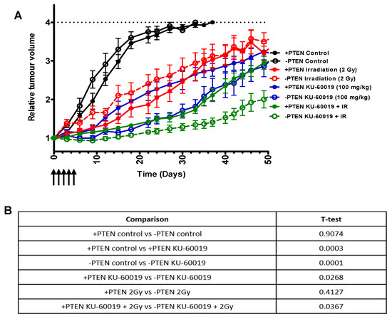 2.5. ATM Inhibitor KU-60019 in Combination with Ionising Radiation Has Enhanced Anti-Tumour Activity in PTEN-Deficient Xenografts