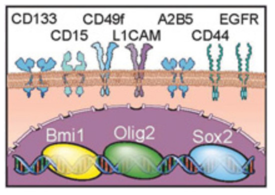 Intracellular and extracellular glioma stem cell (GSC) markers. Adapted from [26].