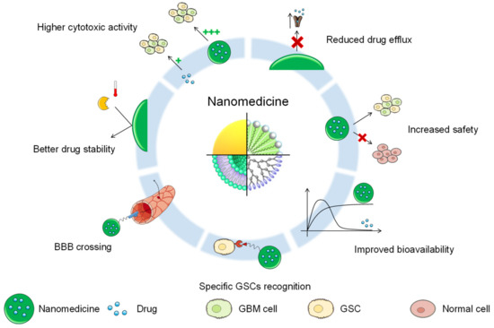 Potential advantages of nanomedicine against GSCs.