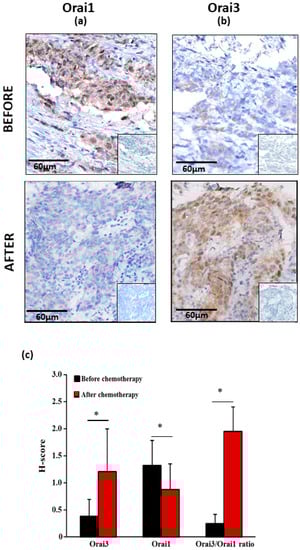 2.1. Orai3 and Orai1 Expressions in Primary Lung Adenocarcinoma at Advanced Stage before and after Chemotherapy Treatment