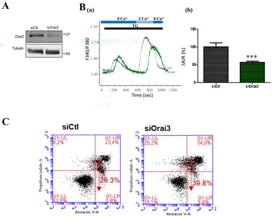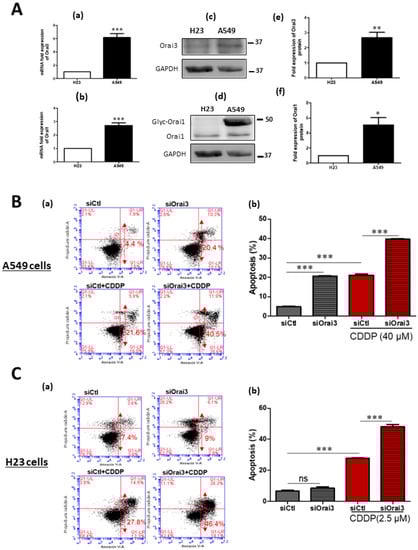 2.2. Orai3 Silencing, but Not Orai1, Sensitized Lung Cancer Cells to CDDP-Induced Apoptosis
