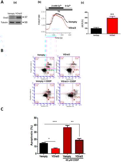 2.5. Orai3 Overexpression Protects the Cells against Cisplatin-Induced Apoptosis