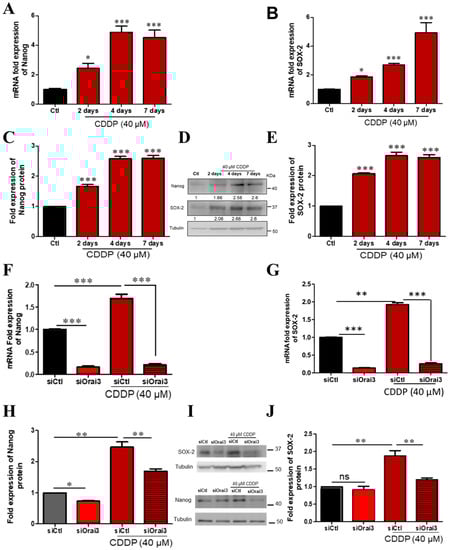 2.7. The Increase of Orai3 Expression by CDDP Is Associated with an Increase in Stem Cell Markers