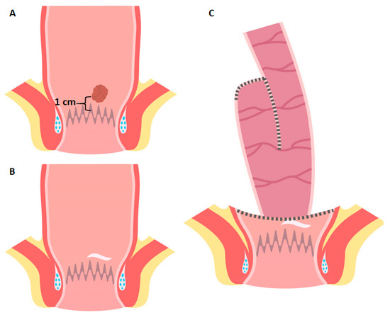 - Clancy, C.; Burke, J.P.; Albert, M.R.; O’Connell, P.R.; Winter, D.C. Transanal Endoscopic Microsurgery Versus Standard Transanal Excision for the Removal of Rectal Neoplasms. Dis. Colon Rectum 2015, 58, 254–261. [Google Scholar] [CrossRef] [PubMed]