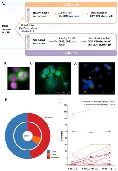 4.2. Comparison of CellSearch® and CellSieve™ Filters for CTC-Cluster Detection in Clinical Samples